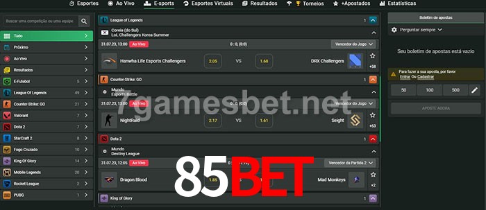 O 85bet oferece uma grande seleção de opções de apostas em e-sports com probabilidades competitivas